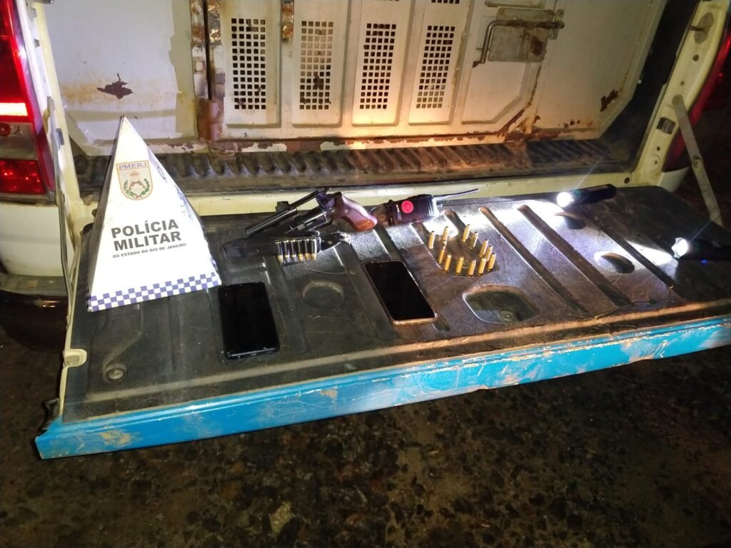 Após o disparo, o Lucas Mattos abandonou um revólver no matagal e rendeu-se, deitando-se ao solo. Durante revista pessoal, foram encontrados em sua cintura um coldre com munições e um rádio transmissor; em seus bolsos, dois telefones celulares e mais munições. Após varredura no local indicado pelo abordado, foi localizado o revólver calibre 38, contendo 19 munições.