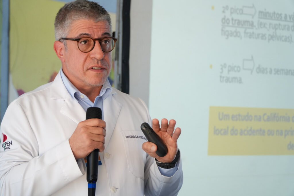 “A ideia é fortalecer a cadeia de sobrevivência dos acidentados, ou seja, os primeiros respondedores, sejam testemunhas dos acidentes ou os agentes públicos que chegam primeiro na cena. Temos recursos humanos, estrutura e protocolos institucionalizados aqui no hospital, mas, para fazermos a diferença, precisamos que o paciente chegue aqui a tempo. Capacitando essas pessoas e trabalhando em prevenção, esperamos que diminua o número de acidentados”, afirmou Marcelo Pessoa, coordenador médico do Centro de Trauma e um dos profissionais que ministrou o “Stop The Bleed”.
