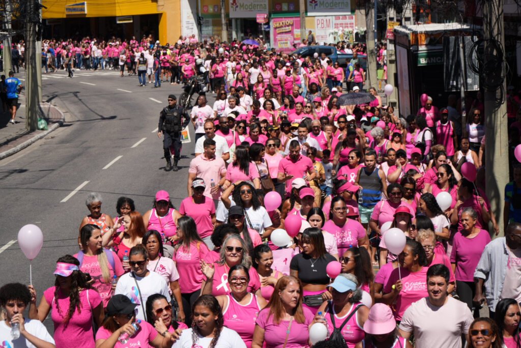 Na manhã deste sábado (25), a Prefeitura de São Gonçalo, através da Secretaria de Saúde, realizou a Caminhada de Conscientização do Outubro Rosa, com concentração em frente ao prédio do INSS, no Centro, e percurso até a Praça Luiz Palmier (Praça do Rodo). A ação teve como objetivo chamar a atenção da população gonçalense para a importância da prevenção e do diagnóstico precoce dos cânceres de mama e do colo do útero.