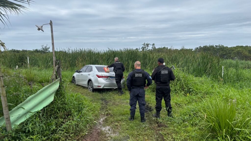 Na ação, a equipe localizou o veículo abandonado com os pneus furados em um terreno próximo à comunidade da Estação. Os moradores informaram que dois indivíduos desceram do automóvel portando armas curtas e mochila e fugiram em direção à área de mata.