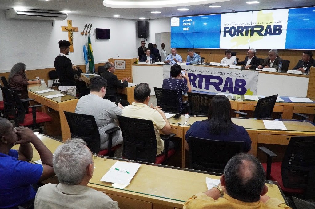 A cidade de São Gonçalo recebeu, nesta tarde de sexta-feira (7), mais uma edição do Fórum Fluminense de Secretários e Gestores de Trabalho do Rio de Janeiro (Fortrab). Esta é a segunda vez que o evento acontece na cidade. O Fortrab reúne secretários municipais de diversas cidades, além de representantes do Ministério do Trabalho e Emprego, membros da sociedade civil, associações e sindicatos. O evento foi realizado no Plenário da Câmara Municipal de São Gonçalo.