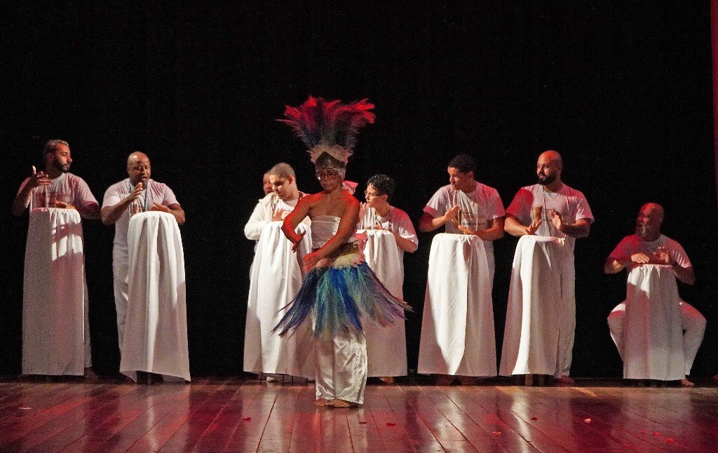 Entre as apresentações de dança e atabaques, houve a mostra especial da canção “Abre Caminhos”, inspirada na umbanda e presente no novo álbum “Abraçar o Caos”, do cantor Romulo Narducci, também presente no teatro. “O álbum tem a fusão da minha poesia com a música. E essa música “Abre Caminhos”, eu tive o grande prazer de gravar os atabaques com o pai Nando de Oxum e com o pai Júnior no terreiro deles. Ela também mistura guitarra com sons ancestrais. Espero que vocês gostem”, contou Romulo.