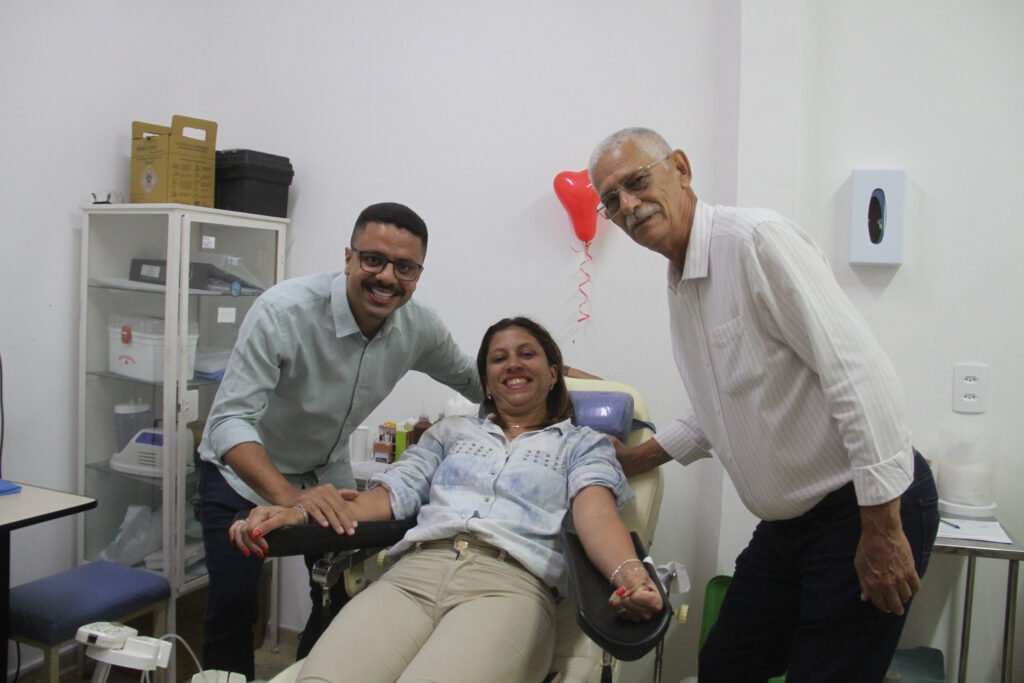 O prefeito Capitão Nelson esteve presente no Hemonúcleo, ao lado do vice-prefeito João Ventura e do secretário municipal de Saúde, Gabriel Mello.