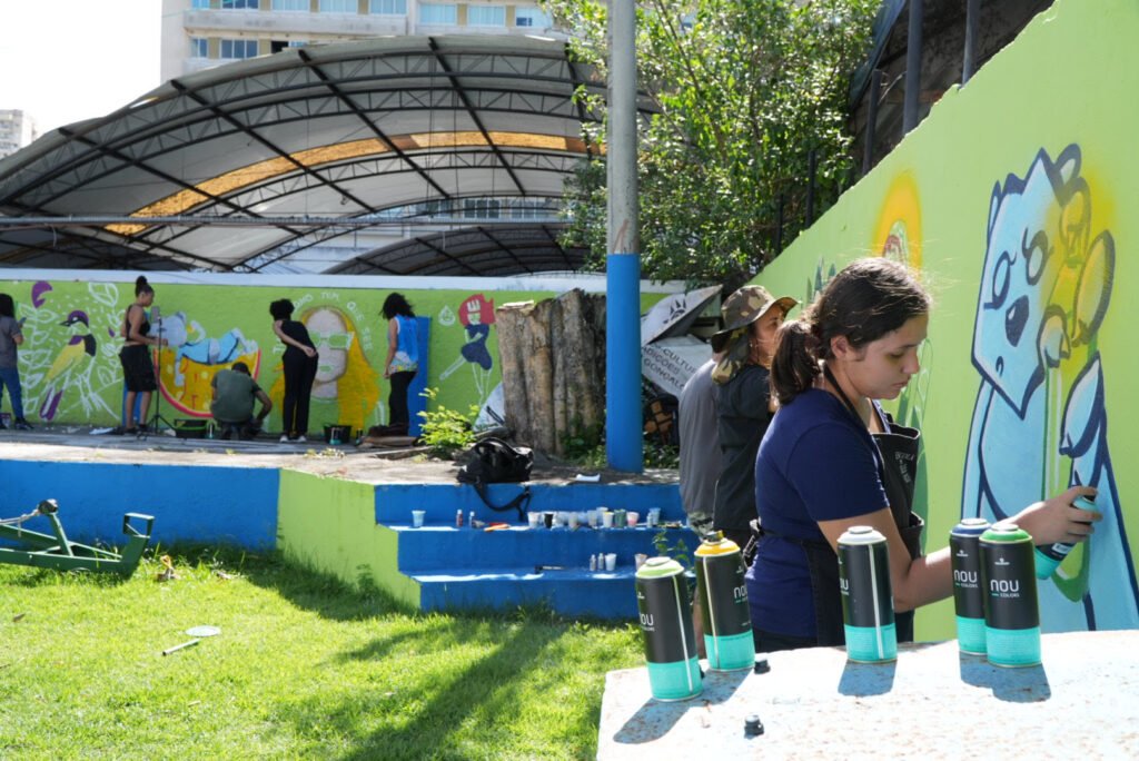 Ao longo das aulas, os alunos tiveram contato com técnicas de graffiti, desenho técnico, muralismo e atividades práticas em diferentes espaços.