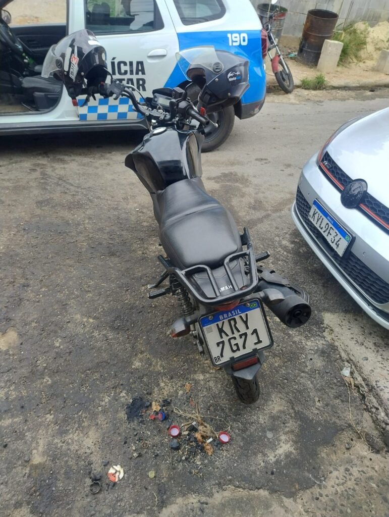 O veículo possuía rastreador que apontava para uma oficina mecânica na altura do número 34 da Rua Um, no Baldeador, onde a equipe policial constatou que o referido automotor já estava sendo desmontado, não possuindo mais a carenagem lateral, aparentemente para retirada do rastreador.