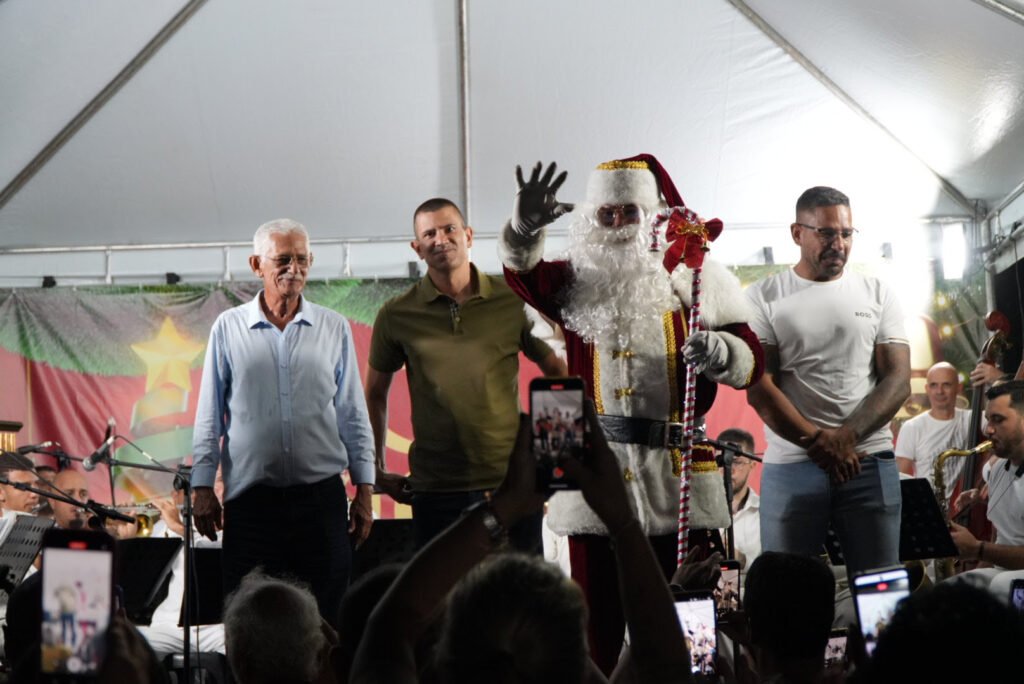 Nesta sexta-feira (12), foi a vez da Praça do Bandeirante ganhar a decoração de Natal de 2025 e receber o Papai Noel. A Prefeitura de São Gonçalo realizou um evento de inauguração que contou com a Orquestra Municipal e a Caravana de Arte e Lazer.