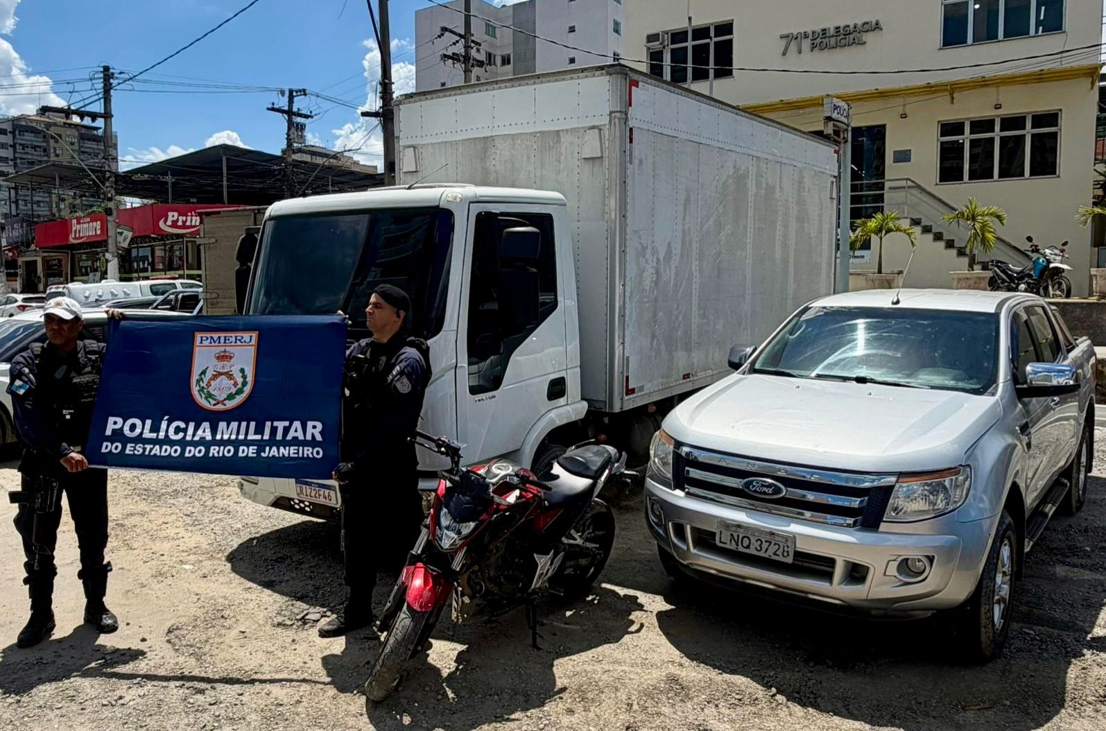 Segundo as informações da Polícia Militar, os agentes receberam informações de que uma Ford Ranger prata teria sido utilizada no roubo de um Nissan Kicks e, logo em seguida, em um roubo de carga, ambos na RJ-104. Com base nos dados levantados, as guarnições realizaram um cerco e conseguiram interceptar o grupo suspeito.
