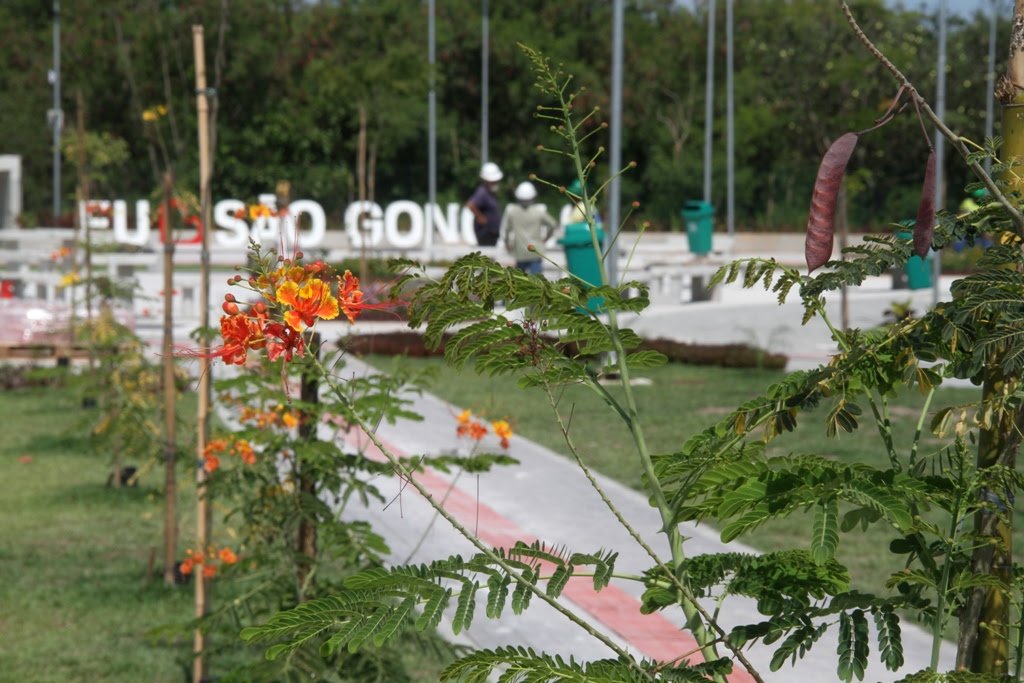 “O plantio de mudas de arbustos e árvores também está sendo finalizado. Até o momento, foram plantados mais de 10 mil mudas de arbustos e plantas ornamentais e mais de 250 espécies de árvores. Entre as espécies de arbustos e plantas ornamentais plantadas estão dracena cordyline, cróton, alpinia variegata, falso-íris, tamboril (ou orelha de macaco), lantana, ixora, coléus e outras. Já as árvores são jacarandá, jabuticabeira, mulungu, romanzeira, amoreira, pitangueira e mais 10 espécies”, disse o Executivo no texto.