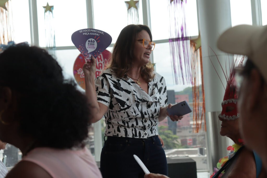 A moradora do Jardim Catarina, Marta Prado, de 75 anos, colocou sua máscara de carnaval e disse que faz questão de participar de todas as atividades promovidas pelo projeto.