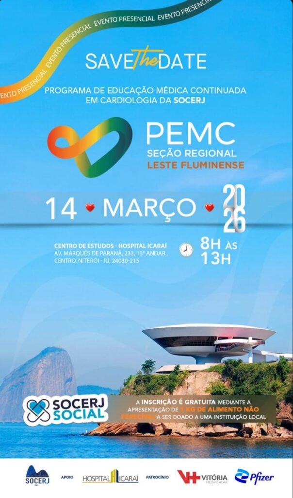 Inscrição: https://socerj.org.br/pemc/leste-fluminense-2026 – Gratuita (mediante doação de 1 kg de alimento não-perecível).