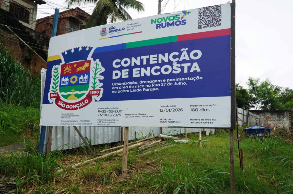 A Secretaria de Desenvolvimento Urbano da Prefeitura de São Gonçalo deu início às obras de contenção de encosta na Rua Vinte e Sete de Julho, no bairro Lindo Parque. O prazo de execução é de 180 dias. As obras incluem ainda urbanização, drenagem e pavimentação, além da implementação de um muro de contenção e de uma tela de alta resistência.