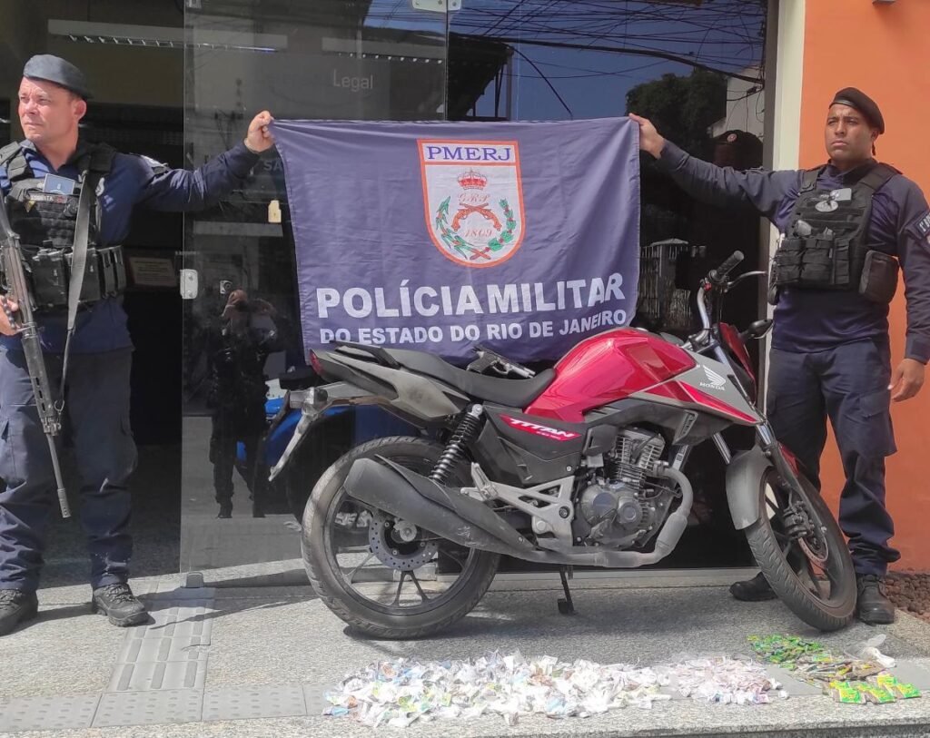 Em São Gonçalo, nesta quinta-feira (23), os policiais do 1ºBPM (Venda da Cruz), prenderam um criminoso em flagrante, durante ação na Av. Paula Lemos. Ao todo, foram apreendidos uma pistola, uma motocicleta e drogas.